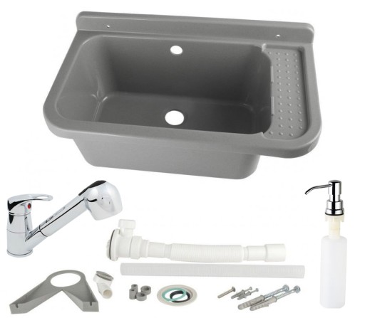 Zestaw - Komora gospodarcza 50x34x21 - szary granit + Bateria zlewozmywakowa stojąca z wyc. natrys. ATUT + Dozownik płynów nablatowy Chrom 250 ml ( KF.KOMORA.50SZ/B398/DOZOWNIK 250 CHROM )