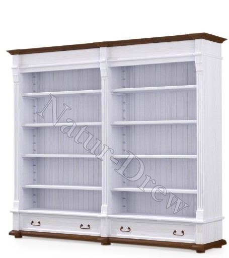 - Drewniany Regał na książki,postarzany z piękną zdobioną koroną u góry,regał posiada cztery regulowane półki,które ułatwiają dopasowanie ,pod przedmiot znajdujący sie w meblu,dodatkowo u dołu posiada drewnianą funkcjonalną szufladę wysuwana na drewnianych prowadnicach,dodatkowym atutem regału są ręcznie kute zawiasy i uchwyty które nadają charakteru i duszy meblom z tej serii.