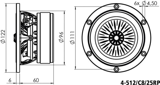 Высококачественный динамик низких и средних частот 4-512/C8/25RP