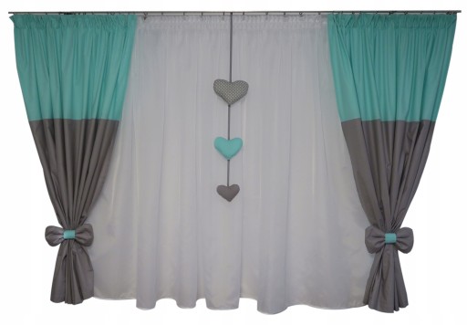 (zestaw zawiera 2 zasłony ,firankę, serca,kokardy, szarfy)