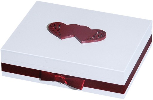 Z zewnatrz pudełka na wiku bordowe 2 połączone serduszka