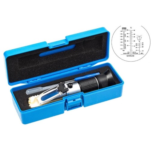 Profesjonalny refraktometr do pomiarów płynów eksploatacyjnych samochodów osobowych, ciężarowych i autobusów. Przeznaczony jest do określania temperatury zamarzania płynu do spryskiwaczy, płynu chłodzącego glikolu propylenowego i glikolu etylowego. Podaje również zakres gęstości elektrolitu.