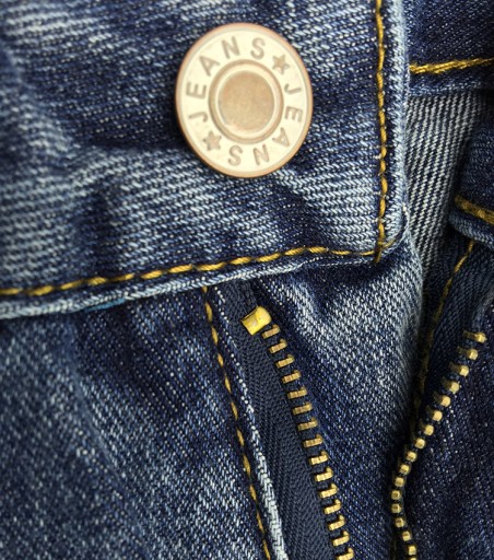 Śliczne spodnie w kolorze niebieskim z myszką Miki w stylu boyfrend. Luźniejszy fason. Kieszenie z przodu z z tyłu. Zapinane na guzik i zamek.