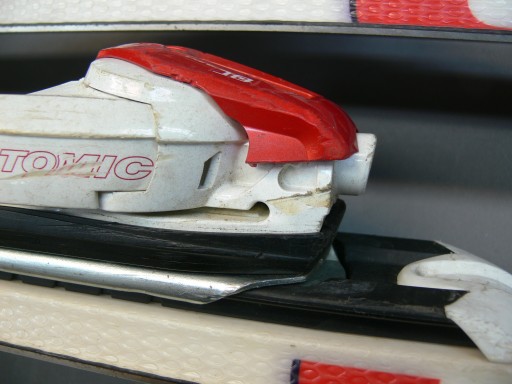 Ślady użytkowania: szata graficzna nieco porysowana i poobijana, miejscami zdarty lakier-laminat, ślizgi w stanie bardzo dobrym, popękany-odłamany kawałek plastikowej obudowy wiązania jak na zdjęciu( wiązanie działa prawidłowo).