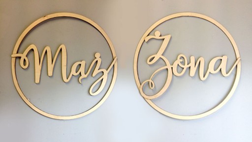 Piękna dekoracja "mąż, żona" do powieszenia za Państwa Młodych.