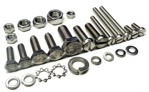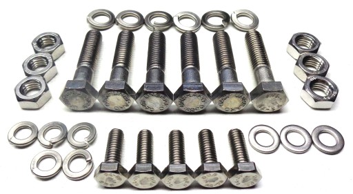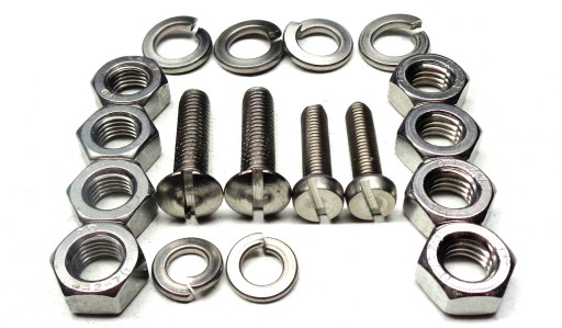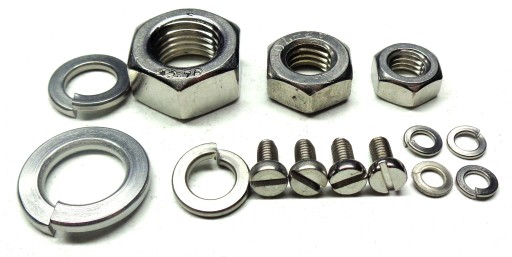 Komplet złożony jest z chromoniklowych elementów nierdzewnych wykonanych w klasie A2. W skład kompletu wchodzą śruby, wkręty, nakrętki i podkładki podzielone na 16 osobno spakowanych grup, umożliwiających bezproblemowy montaż poszczególnych elementów motocykla.