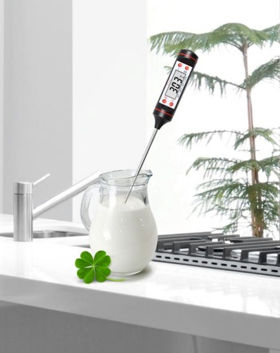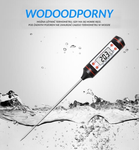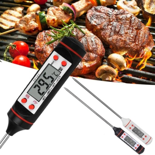 Elektroniczny, bardzo precyzyjny szpilkowy termometr z wyświetlaczem LCD. Doskonale sprawdzający się w gastronomii. Wyposażony w etui, które chroni termometr przed uszkodzeniami mechanicznymi. Termometr ma bardzo szerokie zastosowanie. Idealny do pomiaru temperatury mięs, potraw, ciast, mleka, wody, powietrza itp.