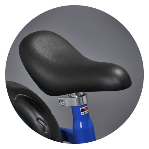 Siodełko o profilu "banana" zostało specjalnie zaprojektowane do naszych rowerków biegowych, daje ono dziecku pewność siedzenia oraz wspiera ruchy dziecka podczas odpychania się. Ponieważ siła odepchnięcia się przenoszona jest tylko przez siodełko, konieczne było całkowite przeprojektownie kształtu siodełka rowerowego tak, by zapewnić dziecku bezpieczeństwo i dobrą kontrolę nad pojazdem.