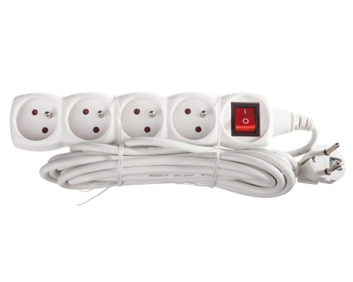 PRZEDŁUŻACZ LISTWA ZASILAJĄCA WYŁĄCZNIK UZIEMIENIE 4 GNIAZDA 5 m 182134