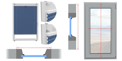 - Podana szerokość będzie wymiarem zewnętrznym plisy. Do podanej wysokości plisy dodamy wysokości uchwytów tak aby były zamontowane nad listwą przyszybową (na płaskiej stabilnej części ramy okna).