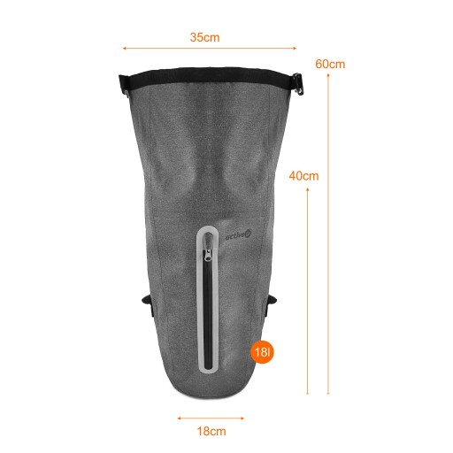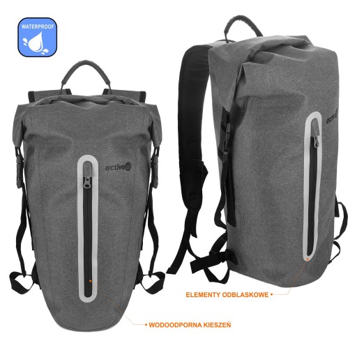 Prawidłowo zamknięty plecak Activeu gwarantuje 100% wodoodporność. Pusty plecak składa się na płasko i zajmuje niewiele przestrzeni co bardzo ułatwia jego transport.