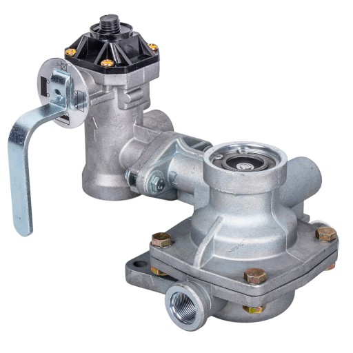 ✅ Zawór ten odpowiada za uruchamianie hamulców przyczepy w momencie naciśnięcia hamulca w pojeździe ciągnącym.