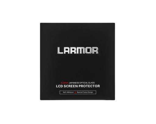 Larmor to seria nowych osłon GGS i zarazem najdoskonalsze osłony na rynku. Szklana, sześcio-warstwowa osłona ekranu LCD wykonana z japońskiego szkła optycznego. Chroni ekran LCD aparatu przed uszkodzeniami, zarysowaniami, uderzeniami oraz zabrudzeniem. Zapewnia niespotykaną widoczność ekranu, dzięki zastosowaniu hartowanego szkła oraz kilku powłok (antyrefleksyjnych, UV, wzmacniających, przeciw-kurzowych). Pod względem wytrzymałości oraz jakości obrazu znacznie przewyższa folie oraz osłony wykonane z plastiku.