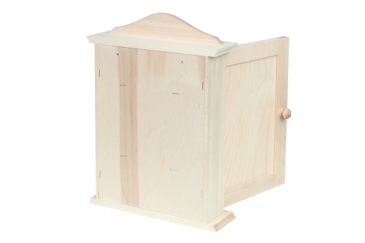Skrzynka na klucze wykonana z drewna sosnowego i sklejki, nielakierowana.