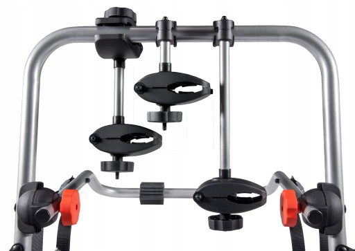Rowery w tym bagażniku montowane są za ramę z pomocą wygodnych w obsłudze uchwytów oraz przy użyciu opasek zaciskowych na koła jednośladu.