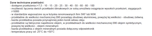 Dostępne przełożenia: 7,5; 10; 15; 20; 25; 30; 40; 50; 60; 80; 100.