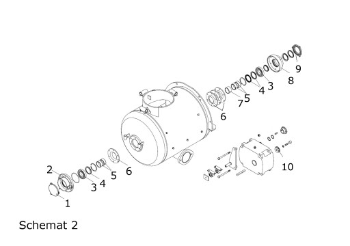 Przedmiotem aukcji jest oryginalne uszczelnienie na przód wału mieszalnika do podajników betonu typu Putzmeister M3241 oraz M740 wyprodukowanych przed 2007 rokiem (na schemacie 1 oznaczone nr 7). Uszczelnienie stosowane jest również w podajnikach betonu typu Putzmesietr M743 oraz Brinkmann DC450 (na schemacie 2 oznaczone nr 6).