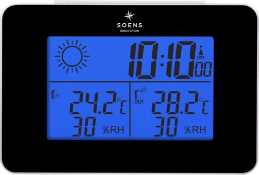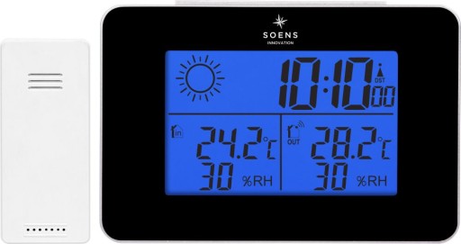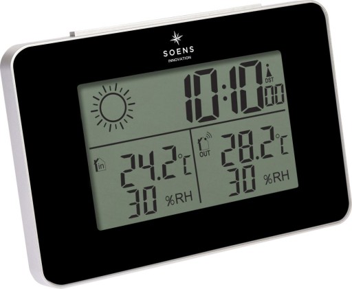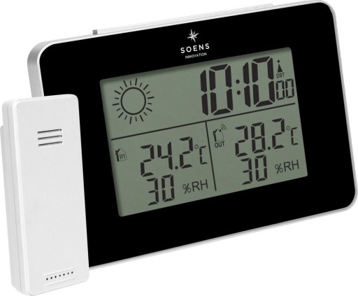 Elektroniczna stacja pogody RCC z higrometrem. Umożliwia pomiar temperatury/wilgotności wewnątrz, jak i na zewnątrz pomieszczenia, dzięki dołączonemu czujnikowi.