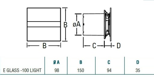 Вентилятор для ванной комнаты Cata E100 GLT, белое стекло, светодиодный таймер