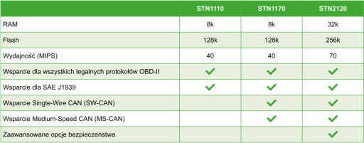 - Chip STN2120 zastosowany w interfejsie ELM327 v4 jest kilkanaście razy szybszy od starego ELM327 dzięki czemu umożliwia poprawną komunikację z protokołami takimi jak J1850 PVM i CAN oraz aplikacjami, które wymagają dużych prędkości