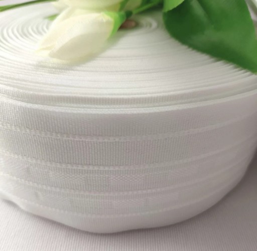 Oferujemy Państwu dodatek do firan i zasłon taśmę białą bawełnianą o szerokości 6cm w wałku