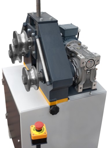 Najbardziej wyjątkową cechą RBM45RB jest to, że posiada układ ręczny docisku górnej rolki oraz napęd dolnych rolek przez motoreduktor. Dzięki czemu zakres roboczy giętarki umożliwia gięcie rur o wymiarach 50x2,0 mm.