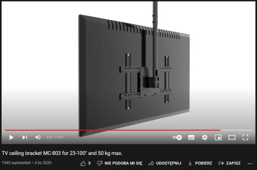 - W komplecie zestaw śrub montażowych do sufitu oraz do przykręcenia telewizora oraz polska instrukcja montażu