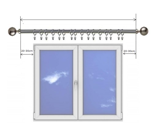 Długość rurki karnisza powinna być o 20-30 cm dłuższa od wymiaru wnęki okiennej