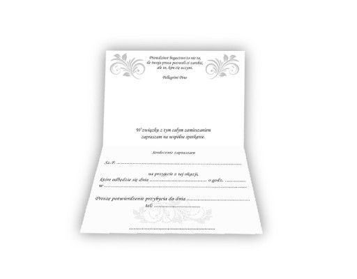 Zaproszenia wykonywane są na papierze błyszczącym, który sprawia, że zaproszenie wygląda bardzo elegancko. Papier zaproszenia występuje w kolorze białym. Zaproszenie składa się na połowę po wysokości.