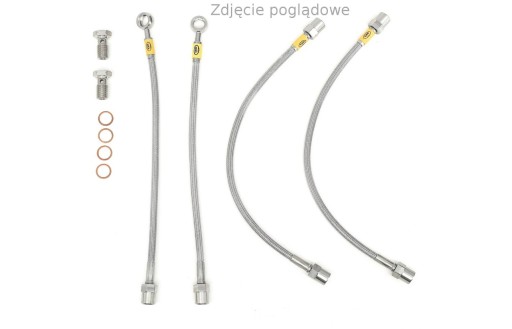 - przewody hamulcowe o odpowiedniej długości, dedykowane do wybranego modelu z zakutymi końcówkami ze stali nierdzewnej