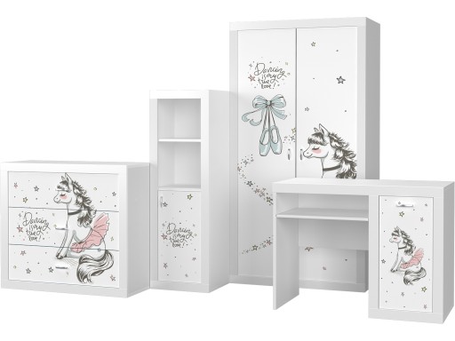 Nowoczesny, funkcjonalny i pojemny zestaw, który znajdzie swoje miejsce zarówno w pokoju młodzieżowym jak i dziecięcym, stanowi idealne miejsce do nauki lub zabawy.