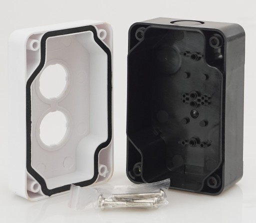 - Górna część obudowy (biała) posiada uszczelkę, dzięki czemu kaseta, po zmontowaniu, posiada podwyższony stopień szczelności: IP65.