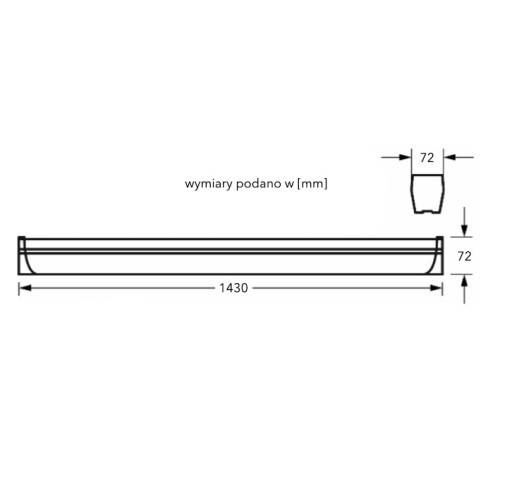 - Wymiary [mm]: dł .1430 x szer. 72 x wys. 72