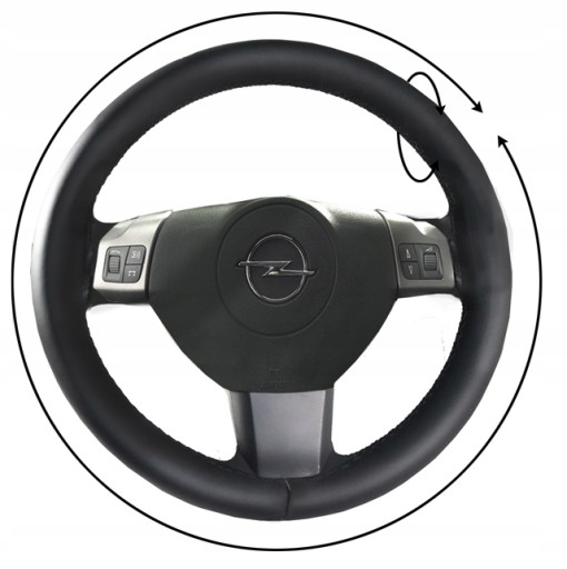 Nałożyć pokrowiec na kierownice w taki sposób aby łączenie skóry, znalazło się na górze kierownicy i na środku kierownicy.