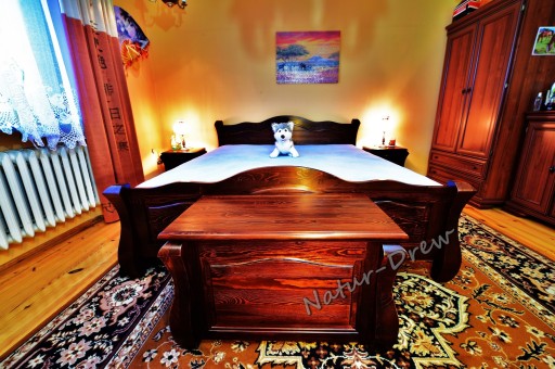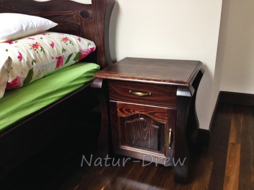 - Drewniana Komoda Posiada dwie pojemne szuflady na bieliznę lub inne rzeczy domowego użytku,oraz wolna przestrzeń pod szufladą, całość wzbogacają złote patynowane okucia ora rolkowe prowadnice .Nogi w Komodzie są unikatowe i Ładnie wyprofilowane co wyróżnia nasze meble z pośród innych.