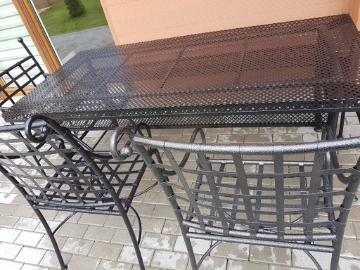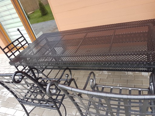 Stół jest pomalowany najpierw specjalnym podkładem cynkowym w technologii malowania proszkowego.