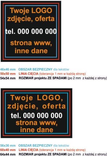 - format: 50x50 lub 60x40 mm (dostępne także inne rozmiary i kształty)