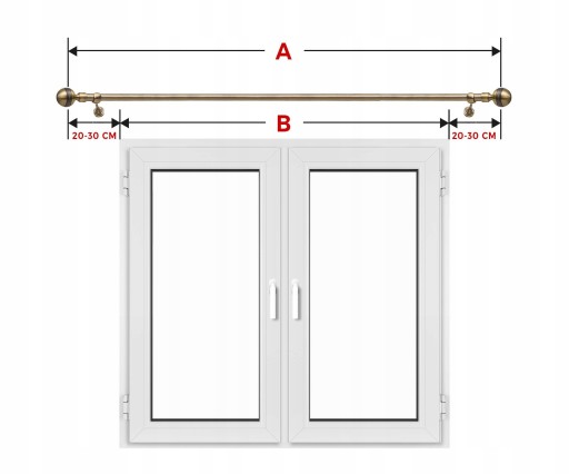 Karnisz (A) powinien być o około 40-60cm szerszy od okna (B).