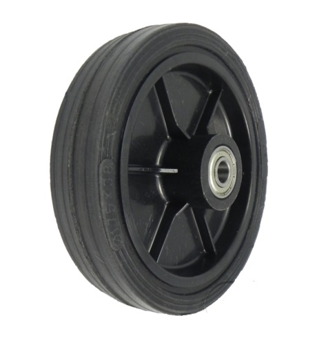 Koła wykonane wtryskowo z polipropylenu w kolorze czarnym. Opona koła pełny odlew z gumy.