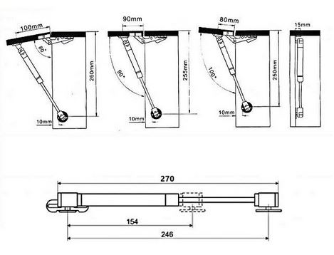 Bardzo solidnie wykonany. Wykorzystywany do drzwiczek meblowych, barku itp. Do każdego podnośnika dołączona jest instrukcja obsługi z sposobem prawidłowego mocowania oraz elementy montażowe.