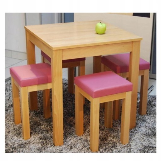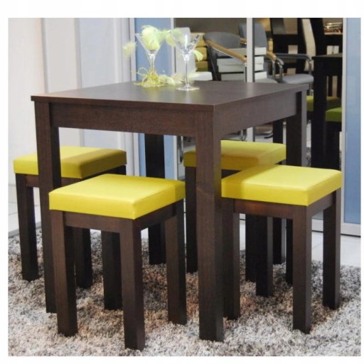 # Poniżej kilka przykładowych aranżacji. Taboret Ergo miękki bejcowany + stół 68 x 68 - produkcji Meble Stelmach.