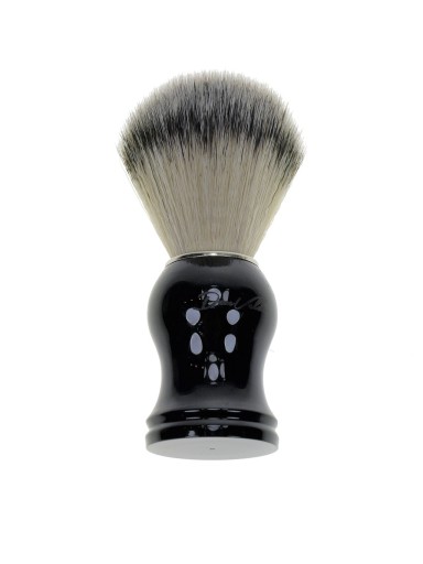 - Tradycyjny pędzel do golenia z ręcznie robioną główką z wysokiej klasy syntetycznego włosia . Rękojeść wykonana jest z czarnego laminatu