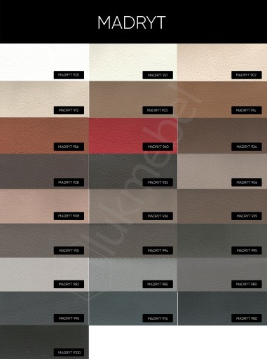 Madryt - ekoskóra, którą cechuje odporność na rozdzieranie i ścieranie. Dzięki swoim właściwościom świetnie nadaje się do obicia mebli tapicerowanych z przeznaczeniem do codziennego użytku.