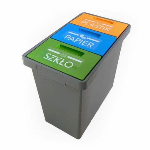 Kosz sprawdzi się u każdego, kto chętnie dba o środowisko. Został podzielony na 3 części (żółty - plastik, zielony - szkło, niebieski - papier). Pojemnik jest wygodny w użytkowaniu, posiada szczelną pokrywę, która skutecznie uniemożliwia wydostawanie się nieprzyjemnych zapachów na zewnątrz. Neutralny kolor idealnie wpasuje się w nawet najbardziej eleganckie wnętrze.