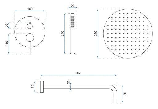 - Zestaw: Deszczownica + ramię + bateria + słuchawka + wąż
