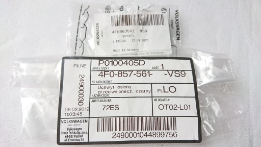 AUDI A6 C6 C7 КРЮЧОК ДЛЯ СОЛНЦЕЗАЩИТНОГО КОЗЫРЯ 4F0857561 VS9 ЧЕРНЫЙ