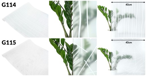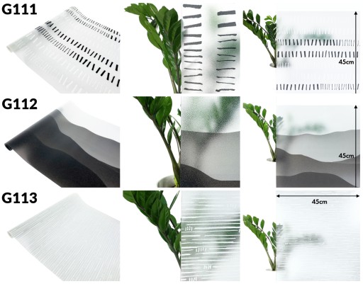 Niektóre wzory oznaczone są strzałką, która informuje, gdzie znajduje się szerokość folii i jak wzór będzie układał się na oknie.