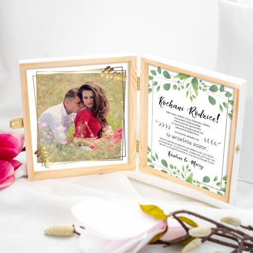 ORYGINALNE ZAPROSZENIE DLA RODZICÓW W ELEGANCKIM PUDEŁKU Z WASZYM ZDJĘCIEM I SPERSONALIZOWANYM GRAWEREM