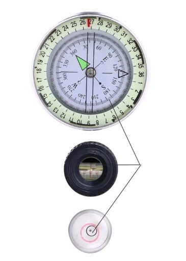 - Kompas (busola) ma metalową obudowę, co chroni go przed zniszczeniem.