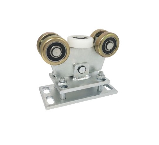 Wózek 5-rolkowy, wahliwy z regulacją wysokości do bramy przesuwnej, drzwi podwieszanych itp do profilu 80x80mm ze ścianką 5mm.